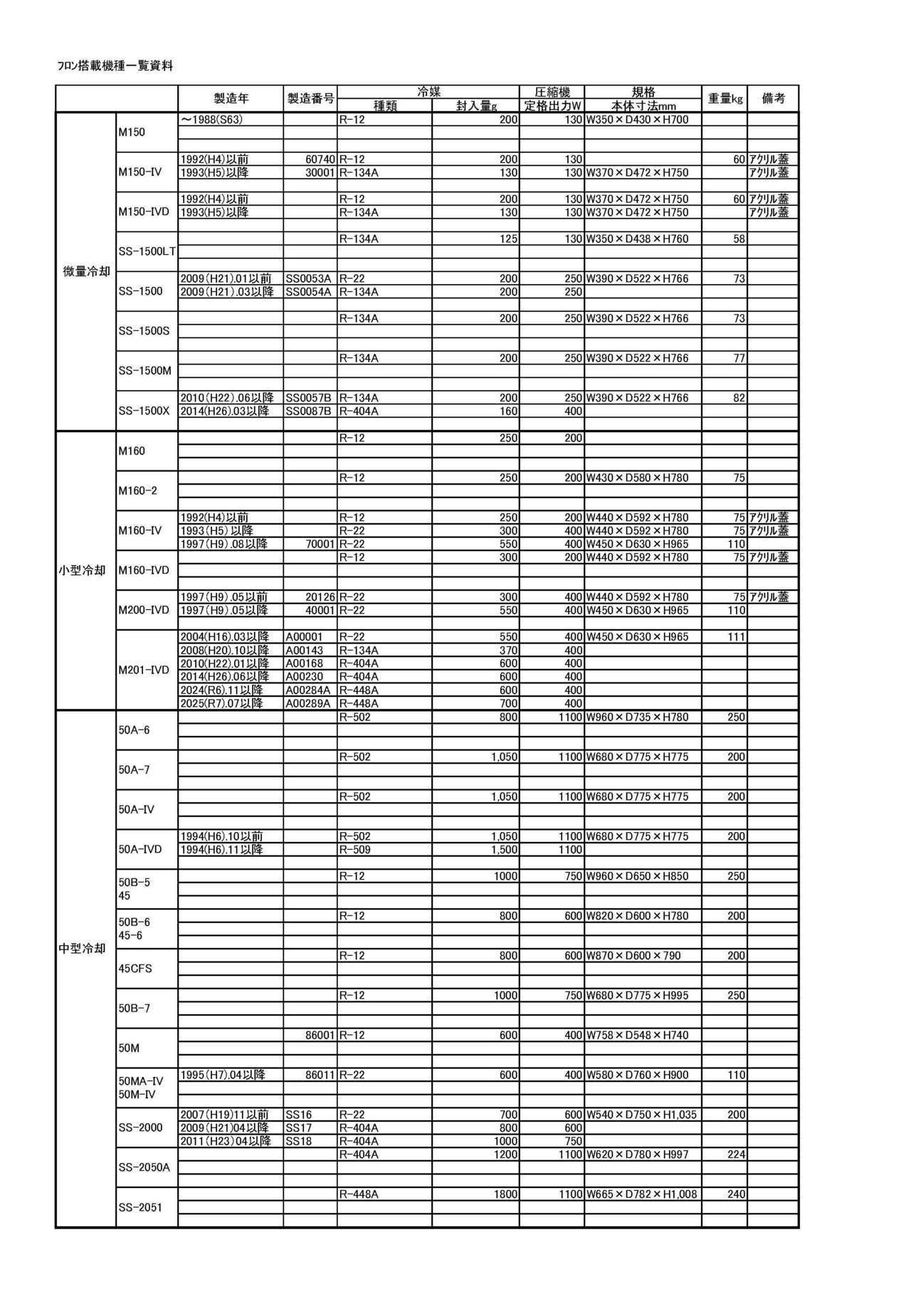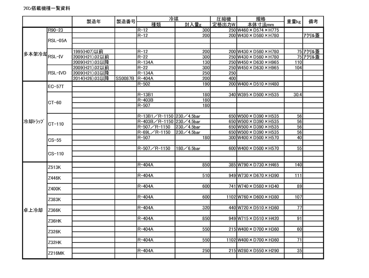 *上記リストの弊社製品は、冷凍機を塔載しており、第一種特定製品に該当します。